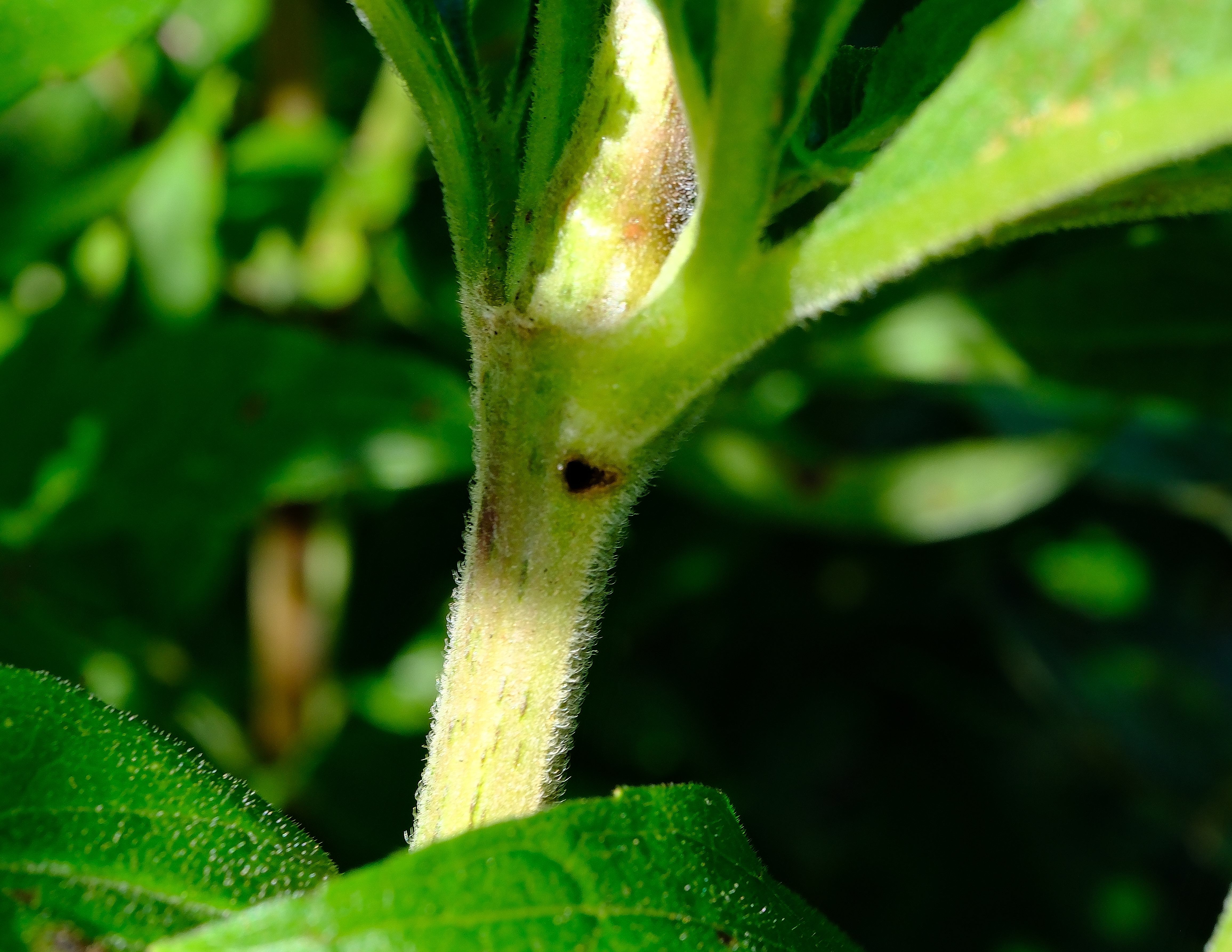Larvae: July-August, September-April. Adults: May-July, July-September. Larva feeds in the stem, creating a gall from which frass exudes.