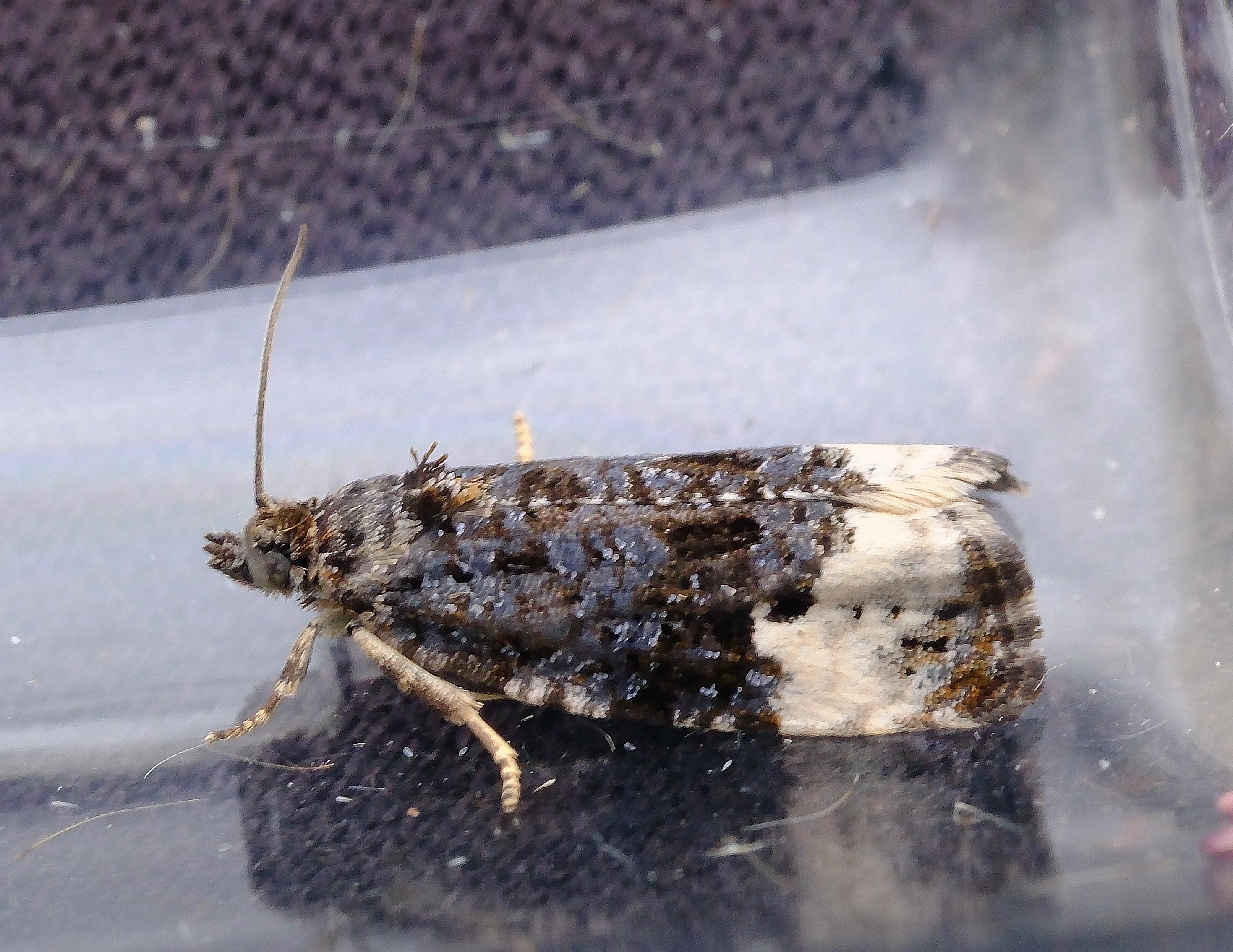 Larvae: April-June (lowland areas), June-August or August-May (upland areas), in a spun terminal shoot.  Adults: July-August (May-August in upland areas).