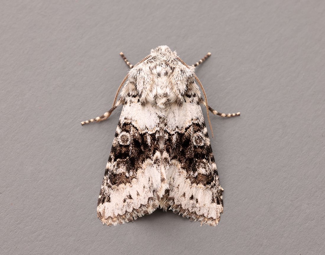 Probablye two generations, one late May to early July and a second in August. It overwinters as a pupa just below the surface. Larvae are present July to late September, feeding day and night, often leaving themselves exposed on leaves in good weather.