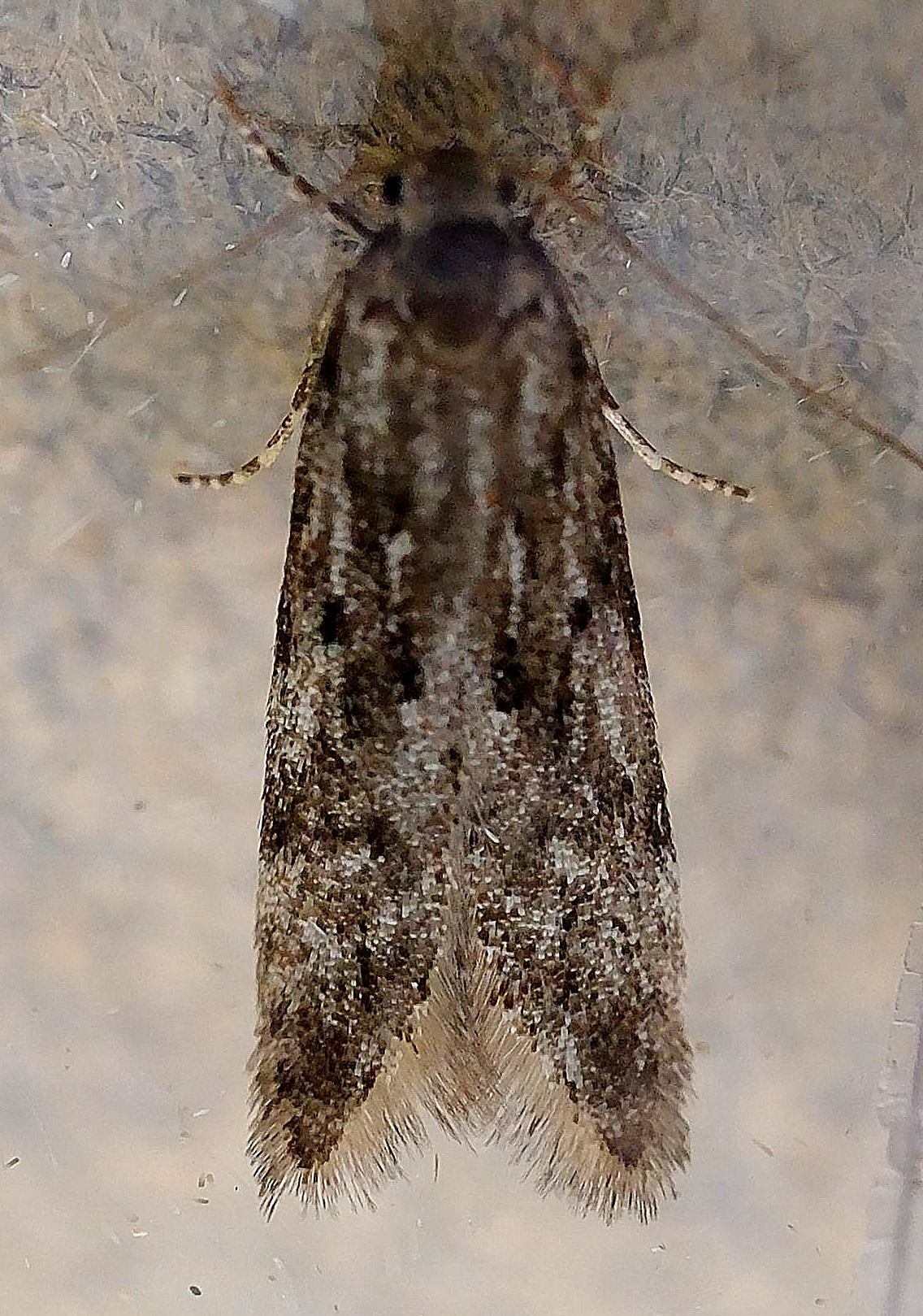 Larvae present August-October, either beneath the down on the underside of a leaf (often curling the leaf edge) or between joined leaves.  Adults fly May-July.