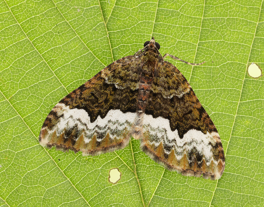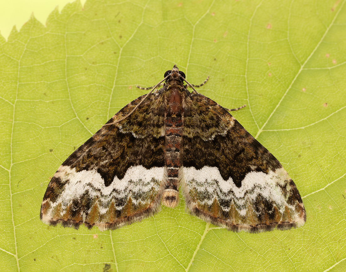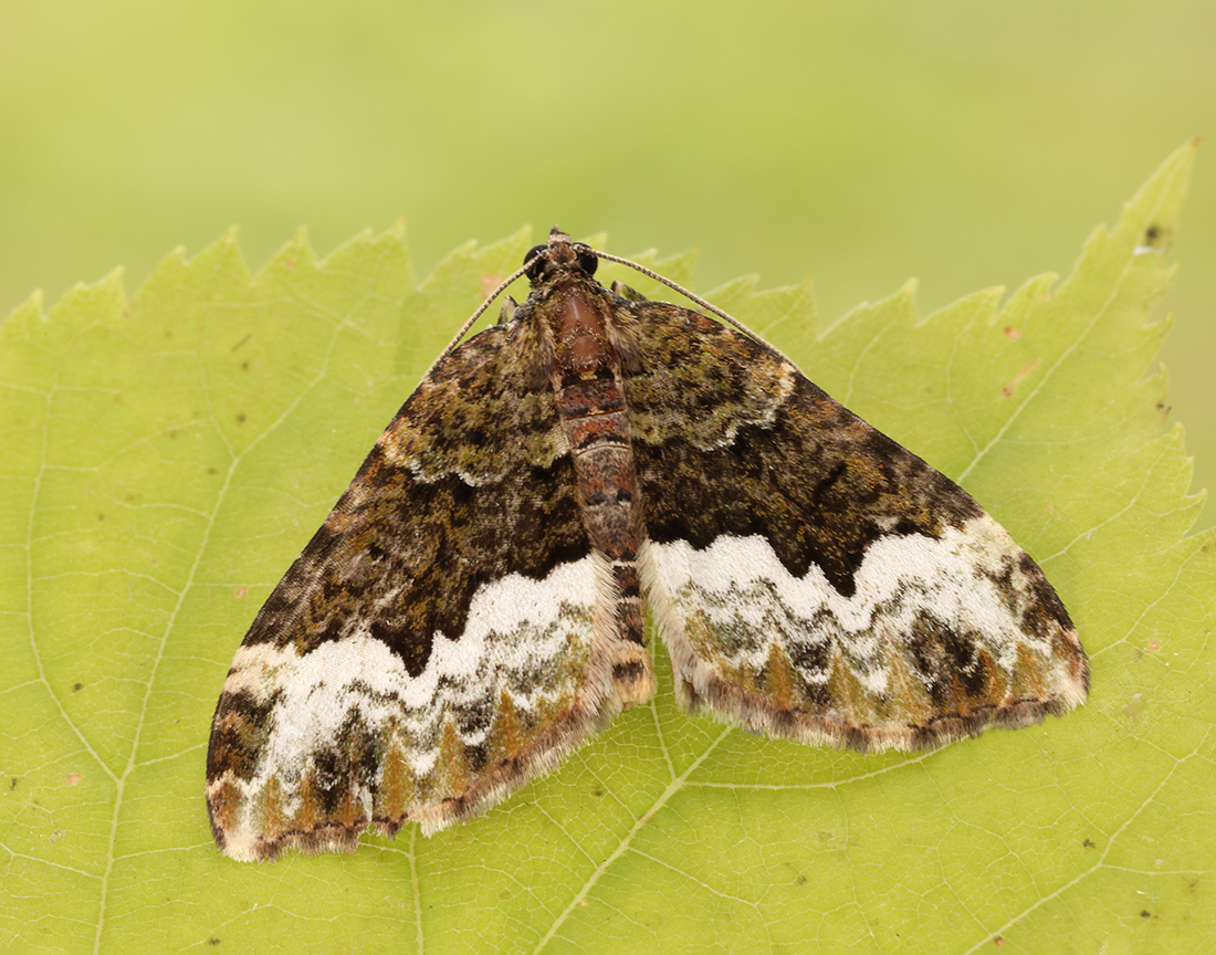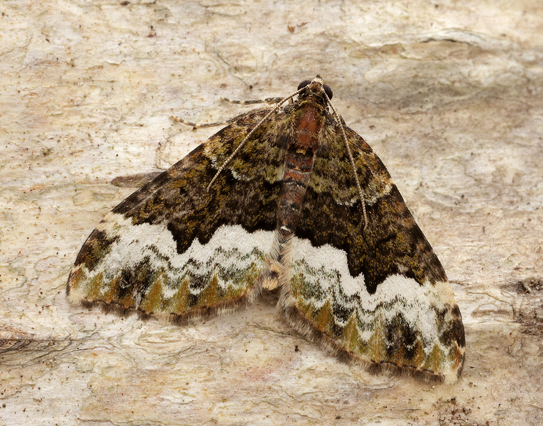 The dark central cross-band has a double projection at the termen end and with the greenish scales at the basal part of the forewing help to identify it. Specimen or quality photo required for record acceptance.