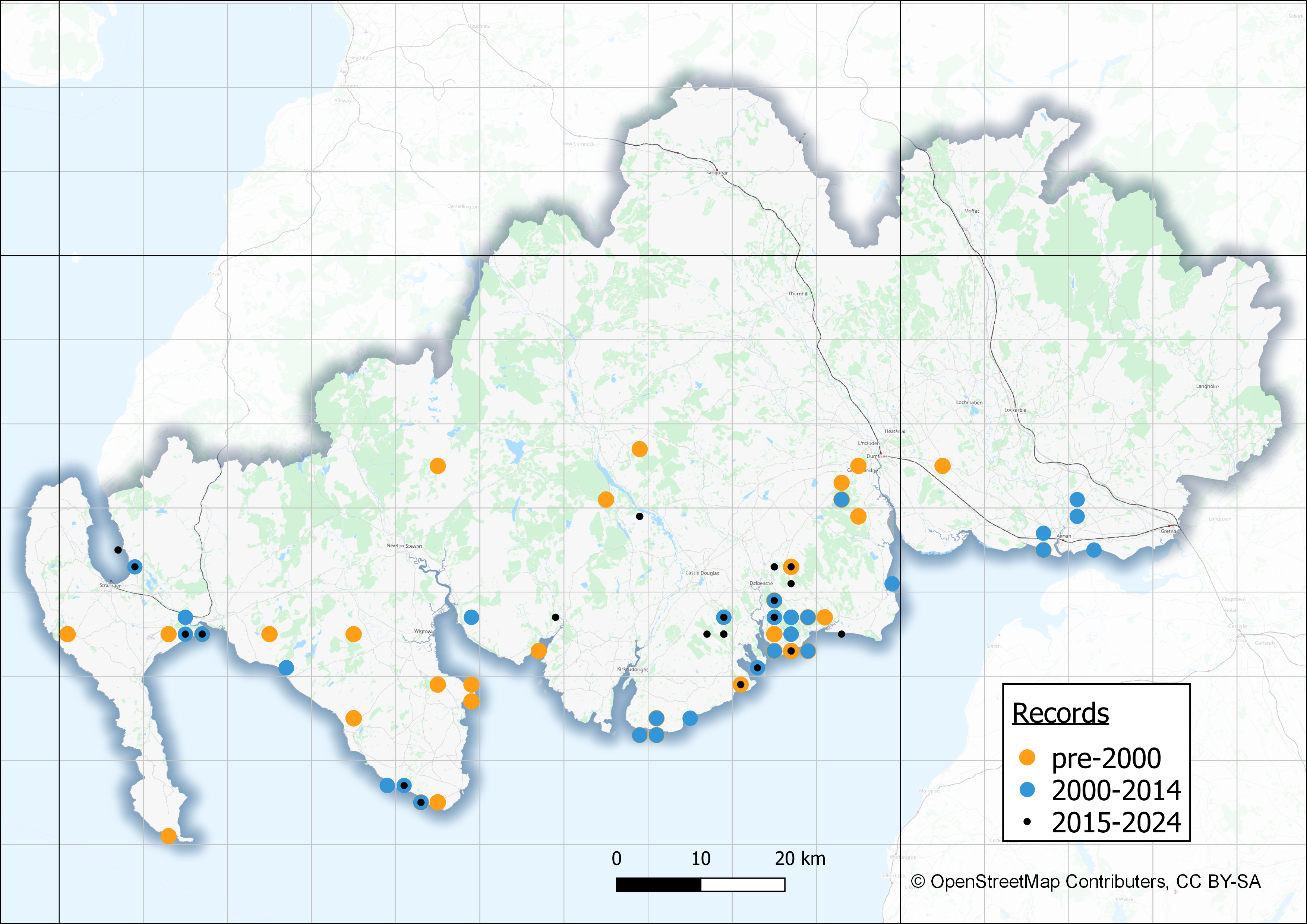 Sites have recently been discovered on forest roads. Despite this it is still one of our rarest species, and many colonies are small and on habitats vulnerable to change.
