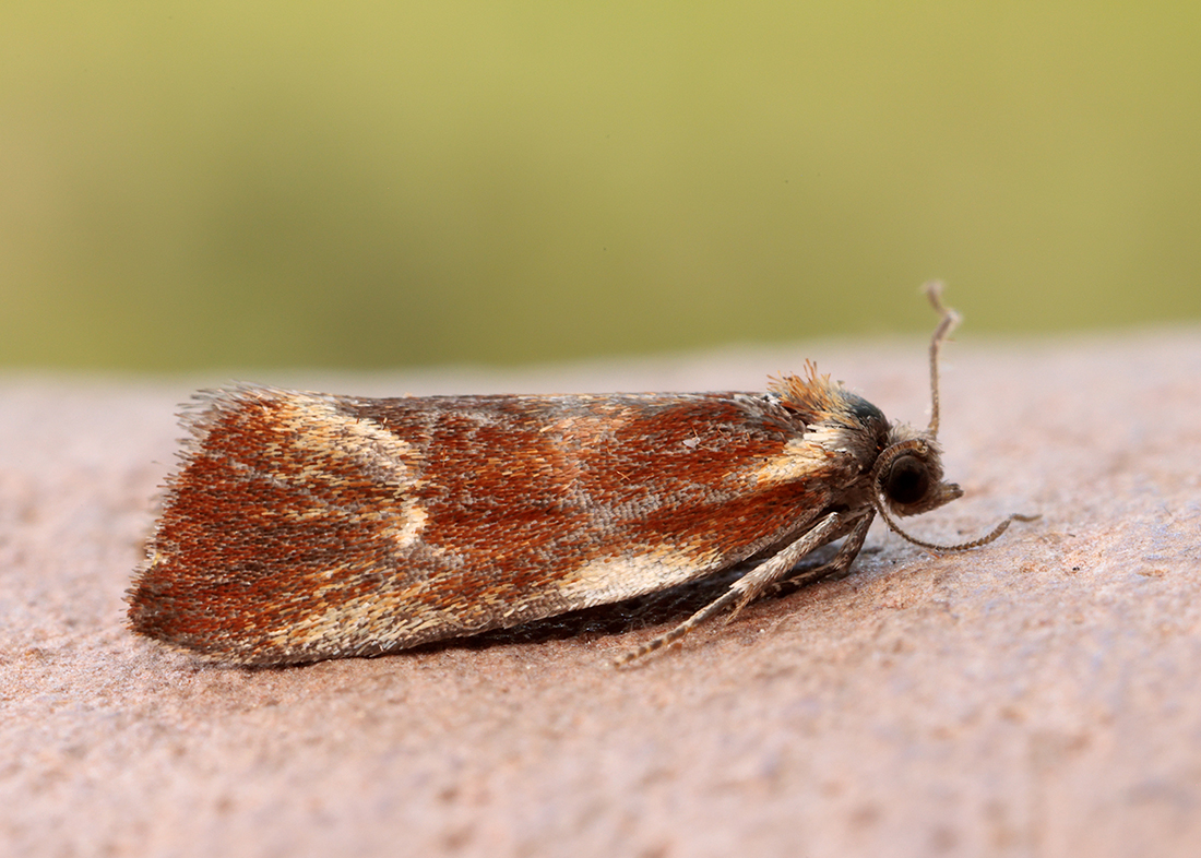 Larvae: July-April between two leaves spun as an open tube. Adults: May-July.