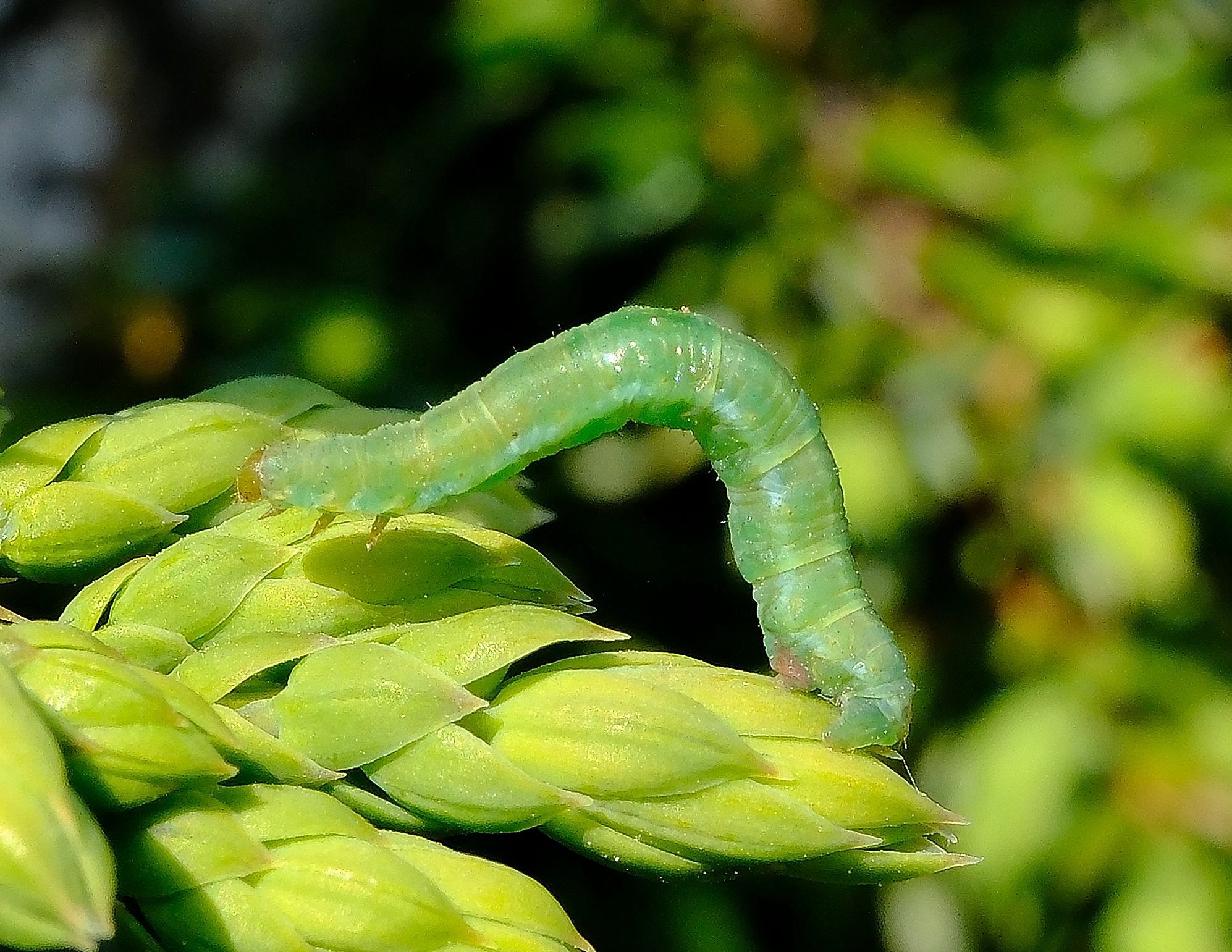 One generation. Overwinters as an egg. Larvae are present April to early June, with pupation taking place among needles.