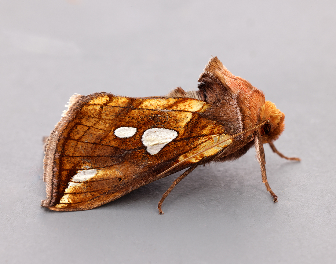 Lempke’s Gold Spot was not recognised until the late 1960s, so our next record came in 1972 from Portpatrick. During 1976 the Bridge of Dee and Peninghame (VC74) Rothamsted stations recorded it three times; the only other RIS data is of one at Mabie Forest in 1988. In 1981 it was trapped on the Hensol Estate and the following year during the Scottish Entomologists’ gathering at Barony College, Parkgate, it was recorded by Teddy Pelham-Clinton.