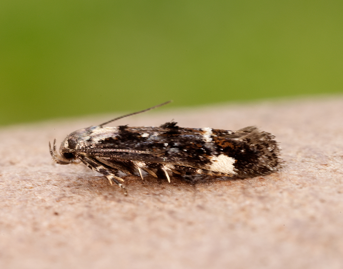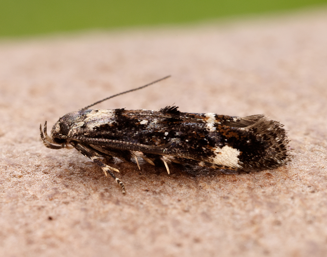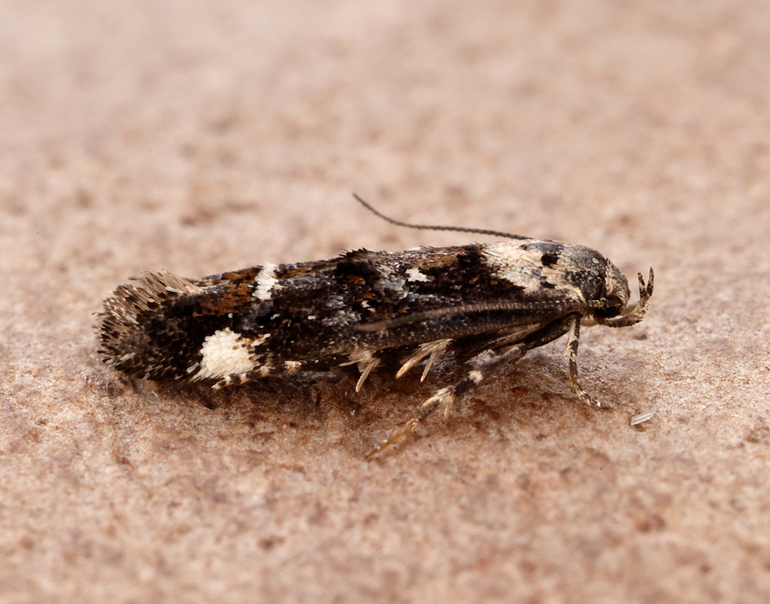 Larvae: April-June in tightly-spun terminal leaves. Adults: June-August.