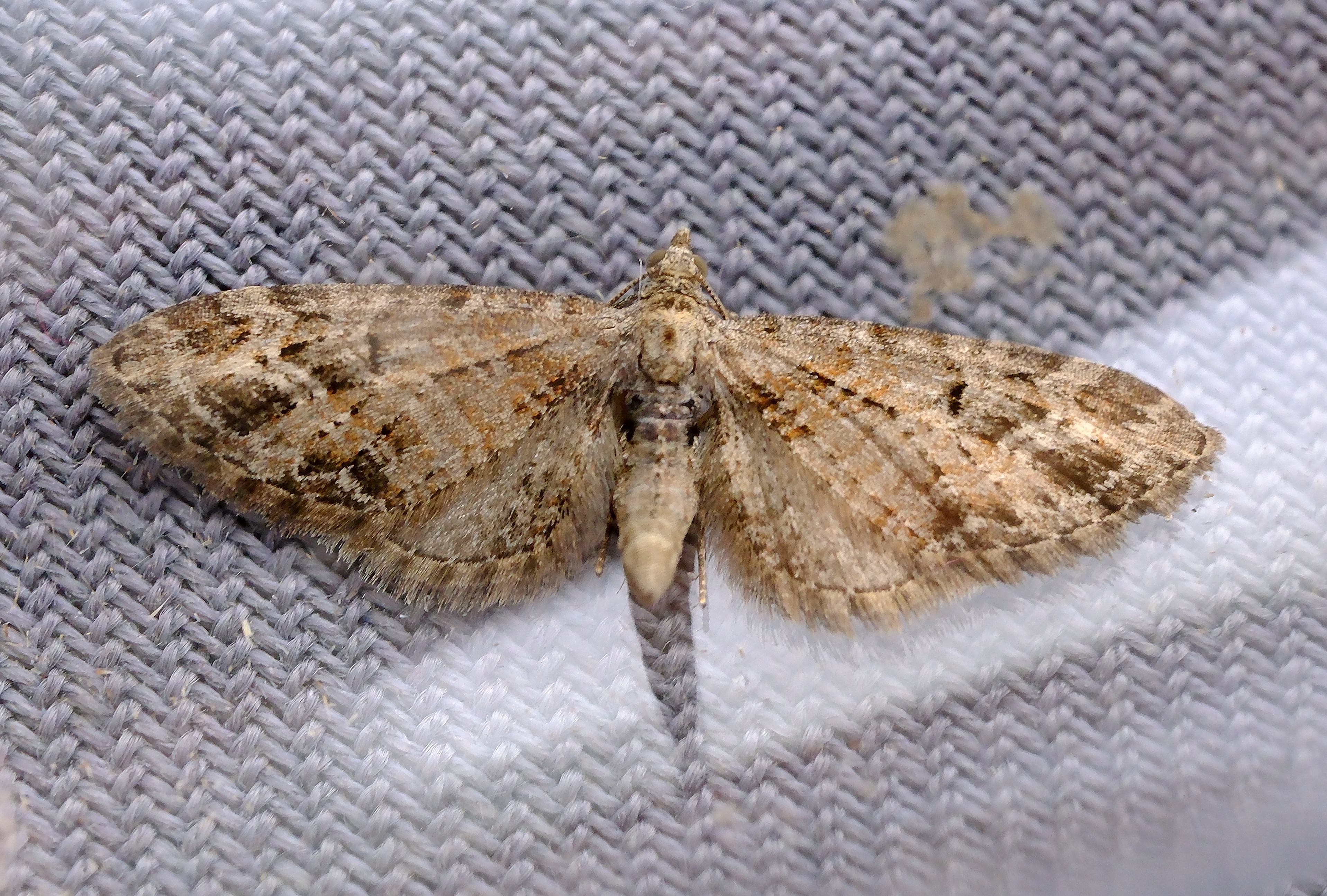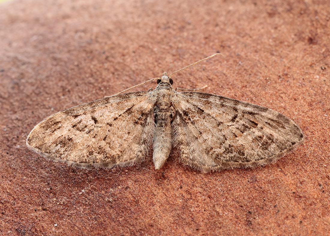 Care required to separate from other ‘pugs.’ A conspicuous elongated dark dash, with a series of small black wedges near, towards the apex, a narrow, pale outer cross-band that is angled at the costa with two pale streaks extending outwards on a greyish-brownish forewing should identify it.