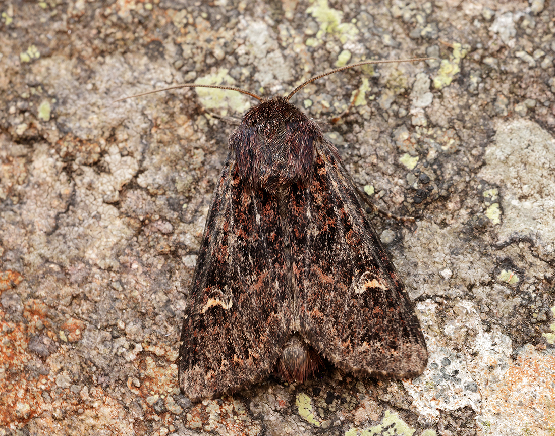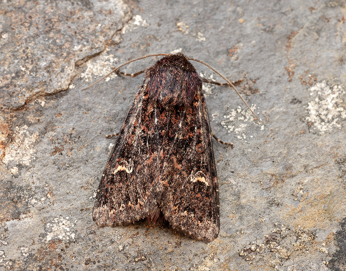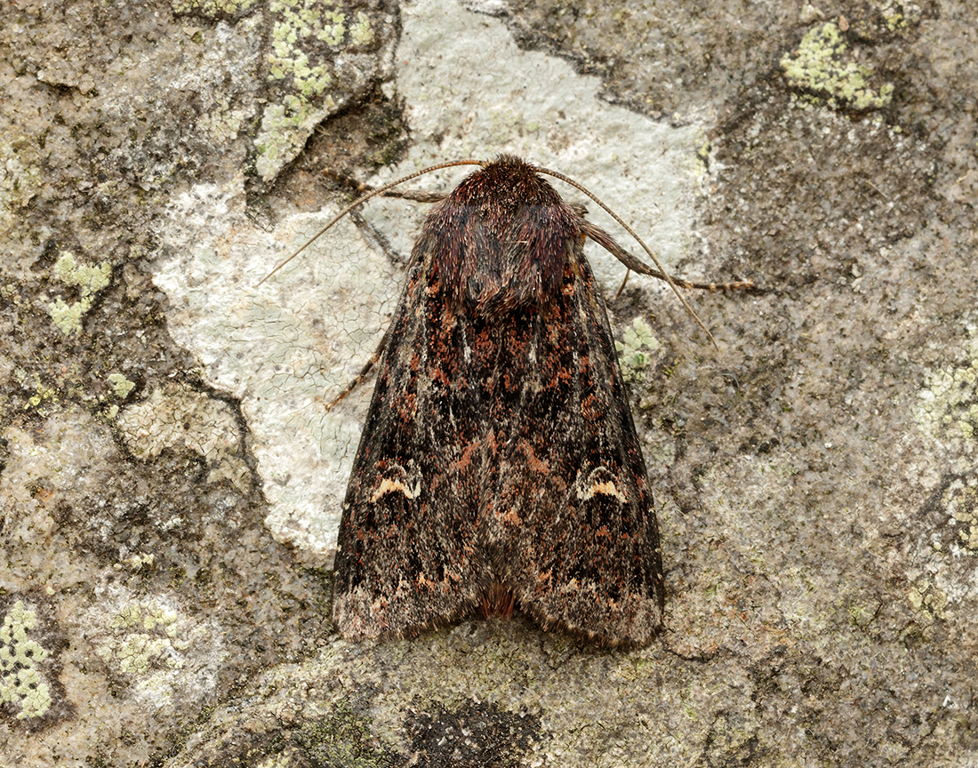 The first records came in early August 2003, when, on Lowther Hill, Dumfriesshire, traps were set at 530 and 725 metres and seven specimens were caught, with a single verified at the National Museums Scotland. The following year in mid-July at a Grey Daggers Moth Group field meeting it was trapped again. Another was caught that year on the Bennan in Glen Trool. It was visited again the following year and three were trapped. Also in 2005, one was caught at the Grey Mare’s Tail NTS on 9th July.