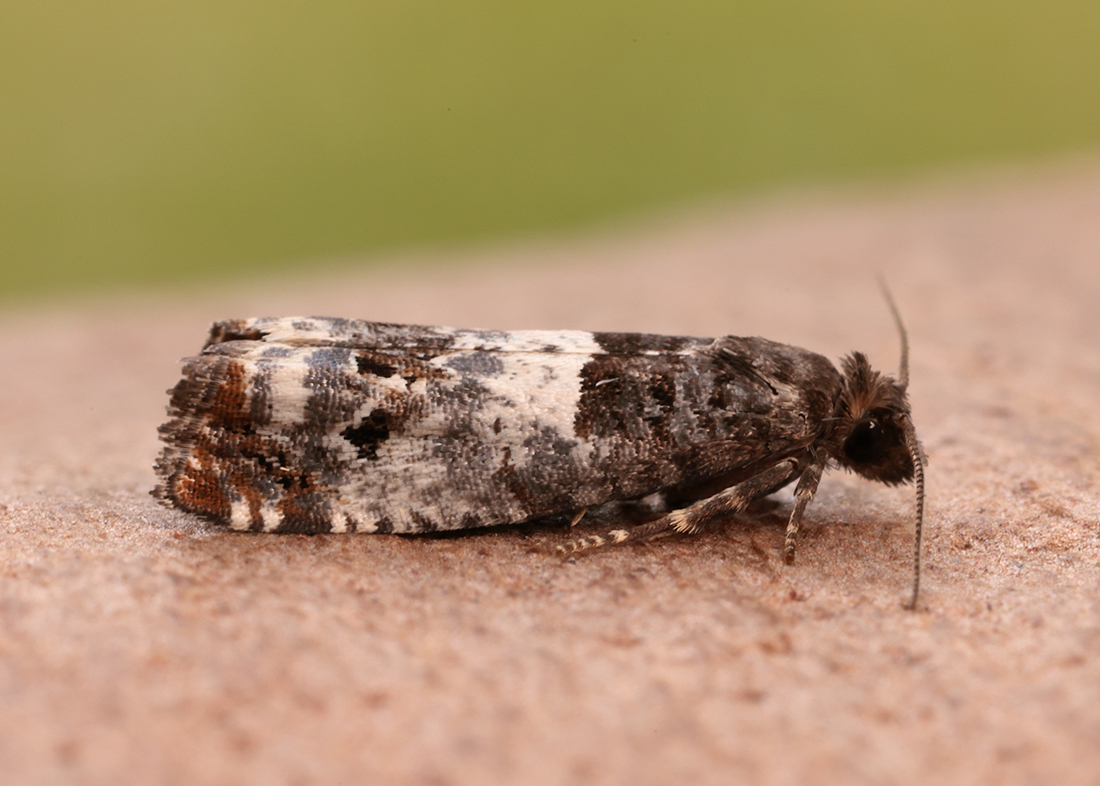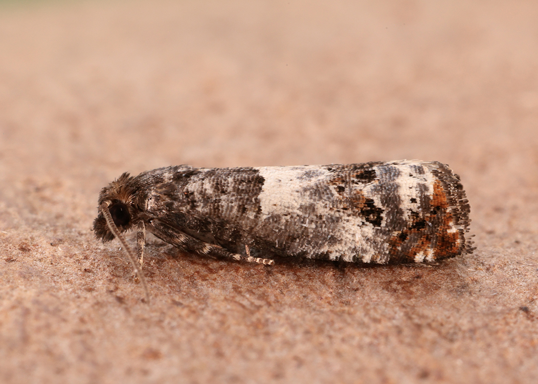 Larvae: April-May in spun leaves, preferring terminal shoots high in the tree. Adults: May-August.