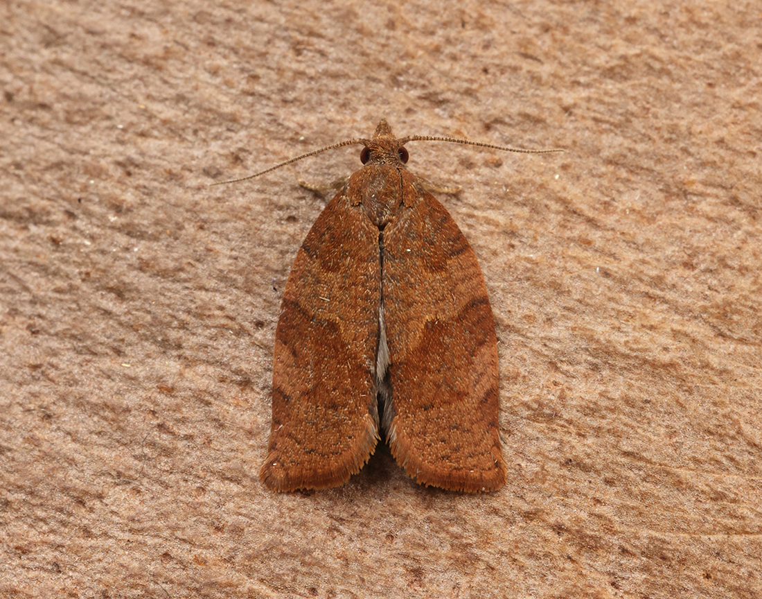 Larvae: July-June. Hibernates as a young larva then in spring feeds in a rolled leaf. Adults: August-September (June-September further south)