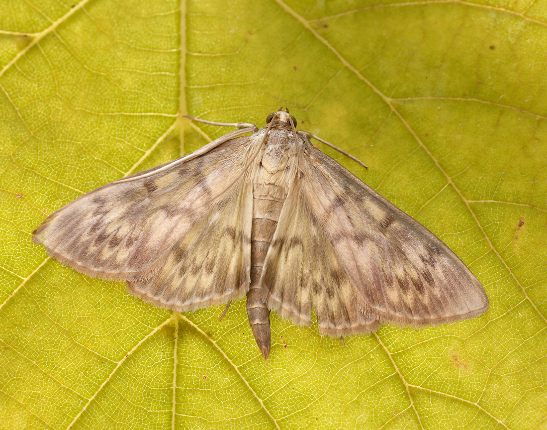 One of the largest micro-moths. A distinctive pale moth with lustrous wings.
