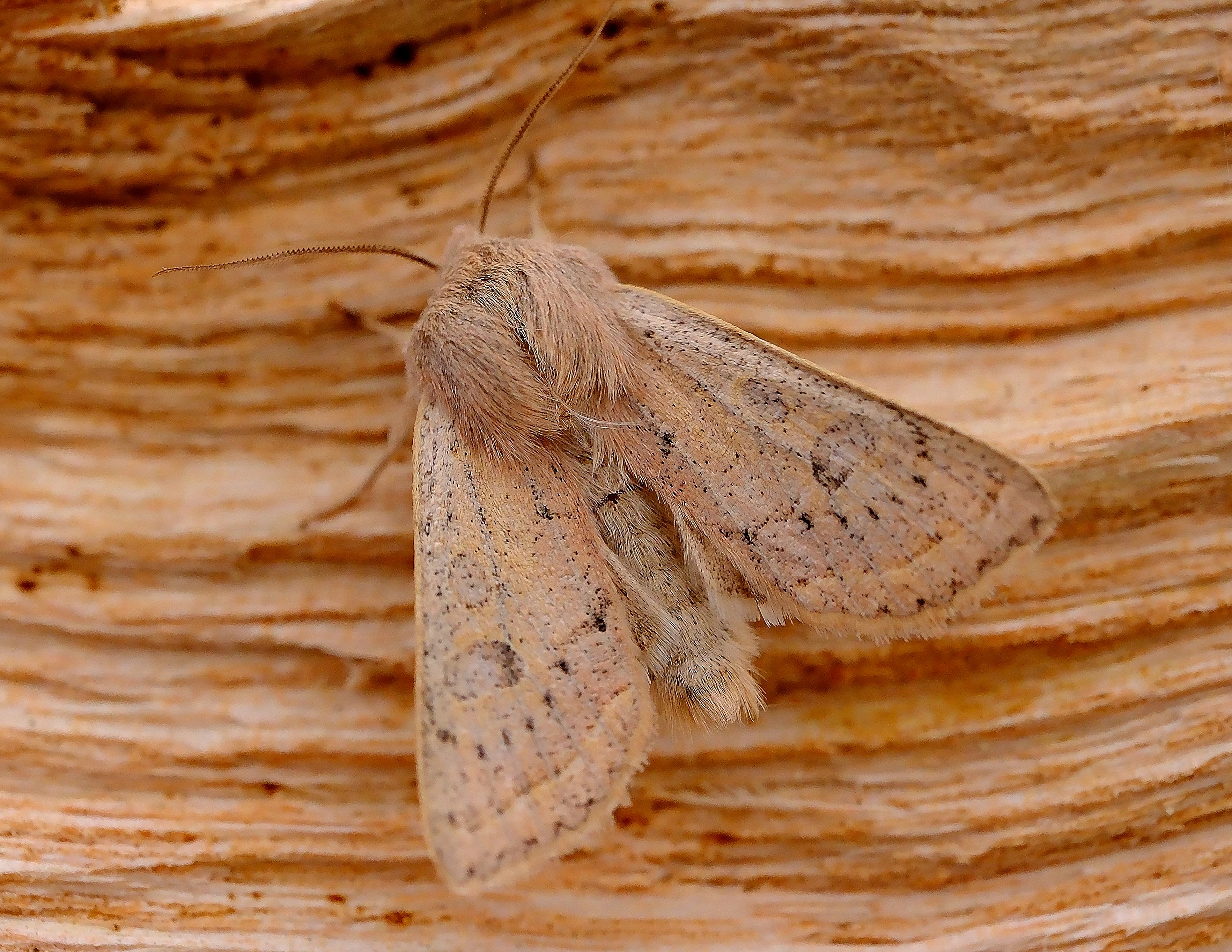 The soft colour of the forewing that is powdered with black speckling, the rather large oval and kidney-mark, with a curved row of fine dots adjacent and a pale, dark-edged outer cross-line all combine to give it a distinctive look.