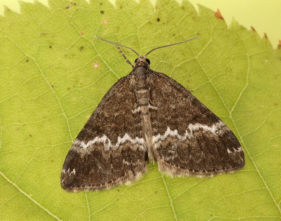 Care required to separate from Small Rivulet. The white cross-band with a fine dark line inside it is positioned two thirds the way down the forewing. Near the trailing edge basally there is one rounded indentation that is key. There are two on Small Rivulet.