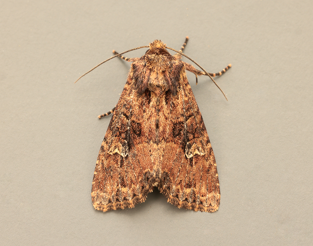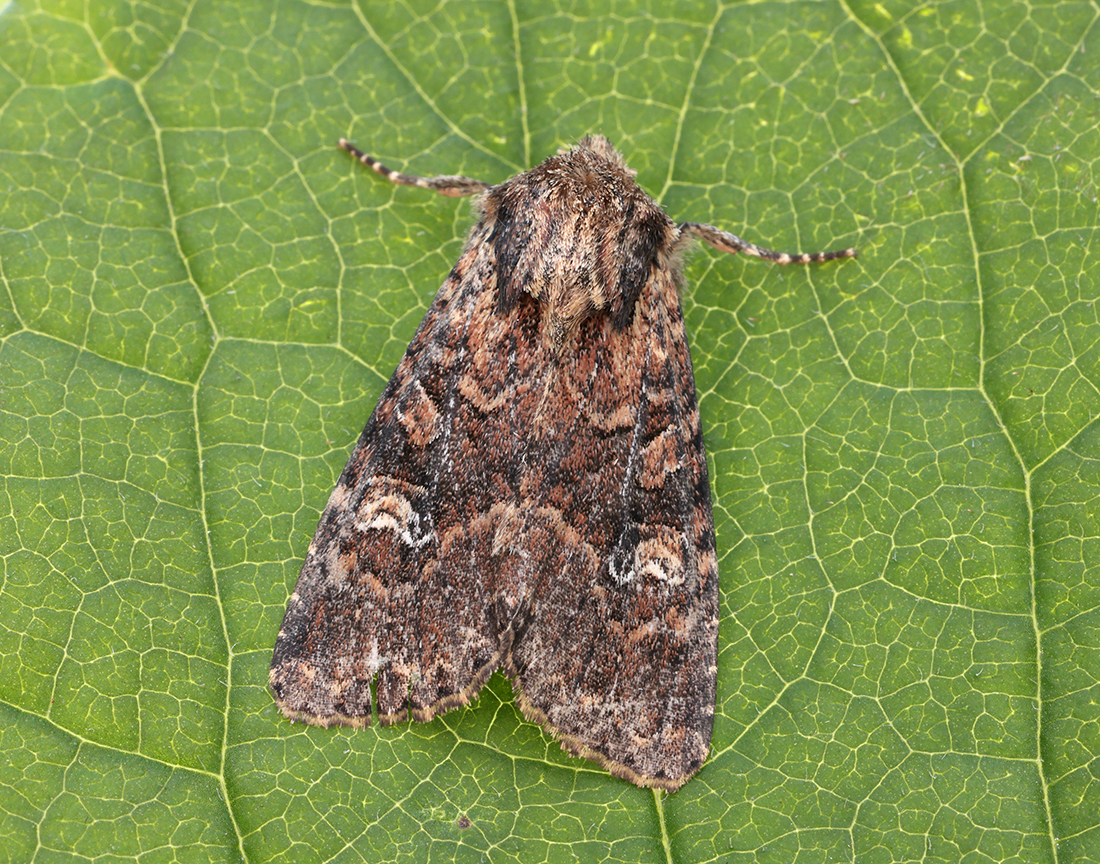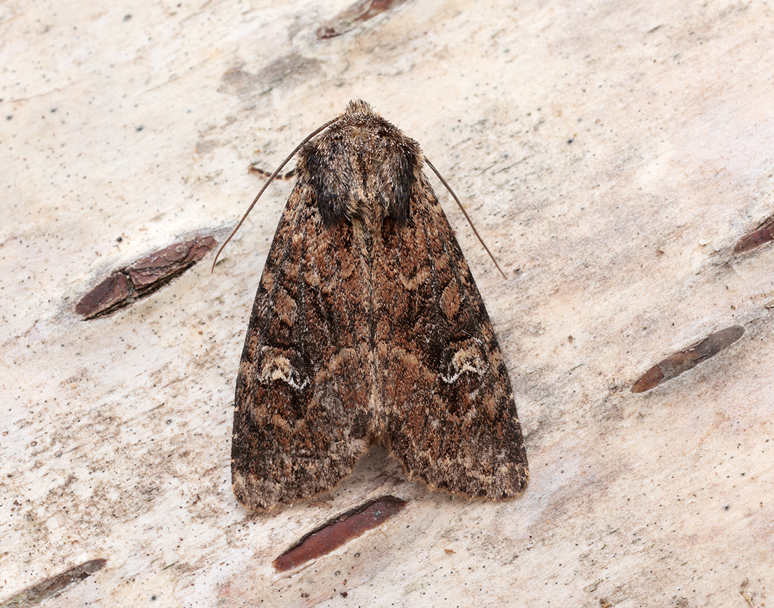 Care required; very similar to Common Rustic and Lesser Common Rustic, though both these species have a later flight period. The centrally-placed basal streak on the forewing, with a faint crescent-shaped mark on the hindwing should help identification.