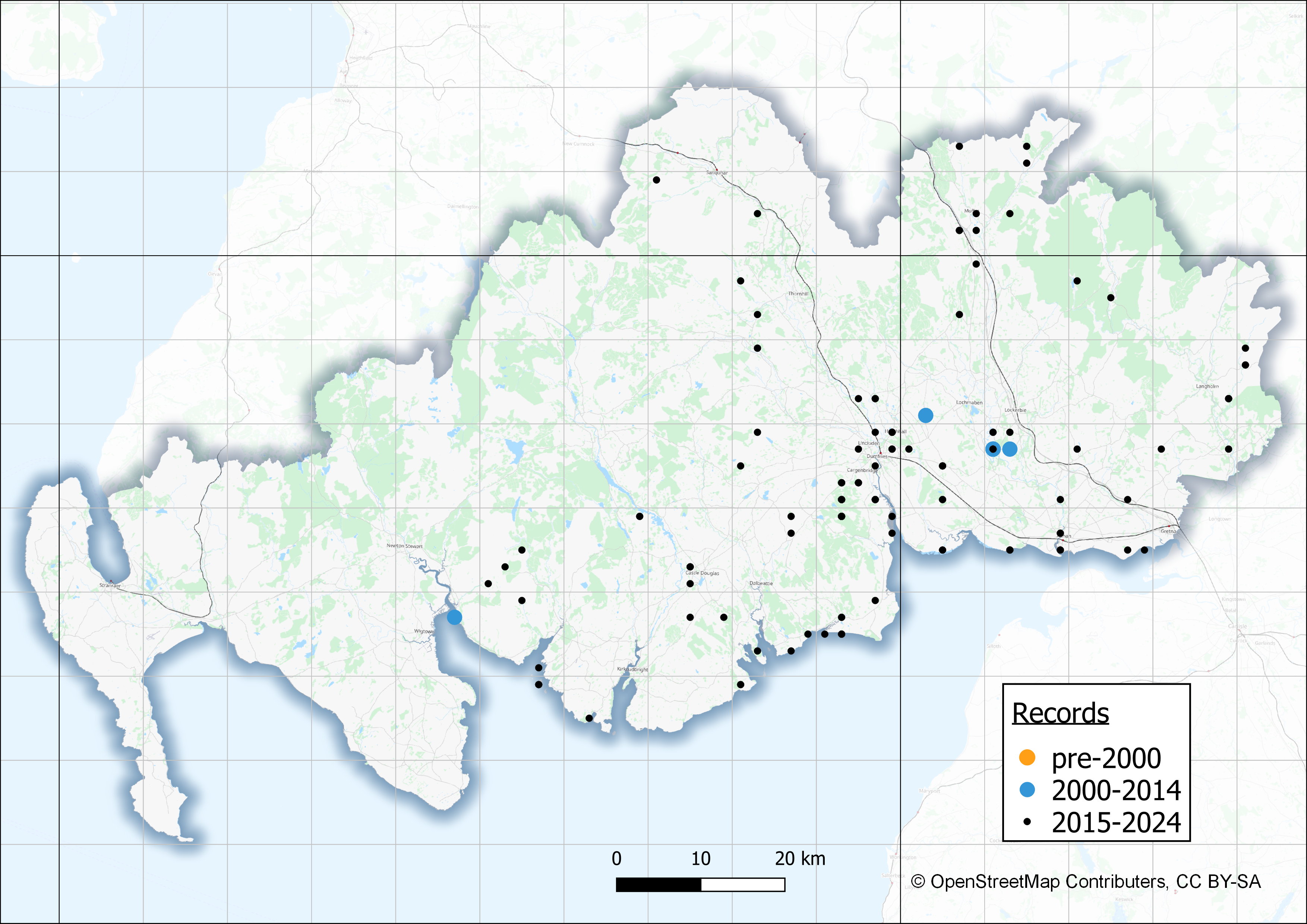In the summer of 2007, remarkably, two new species of butterfly for the county were recorded southwest of Lockerbie – Small Skipper and Essex Skipper. At the time the nearest known colonies were about 40 km (Hawick) and 220 km (Yorkshire) away, respectively. The most plausible theory is that one, or both species were brought in accidentally to the area.